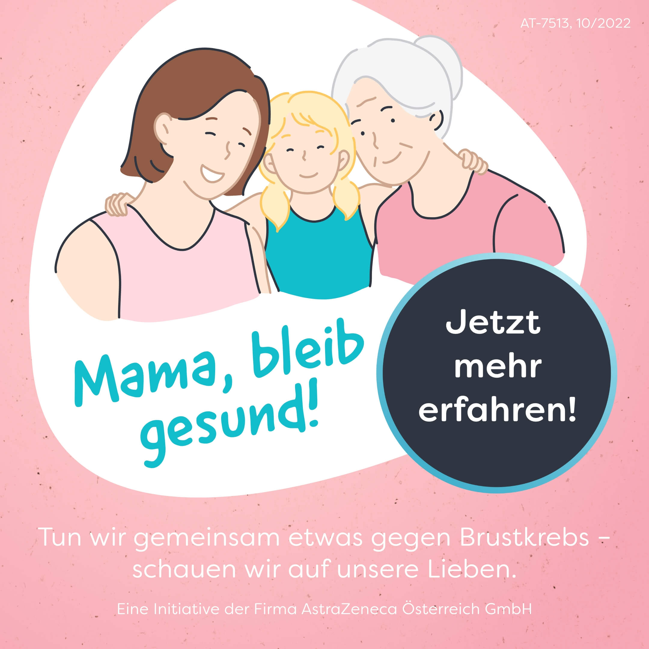 Schauen wir auf unsere Lieben und erinnern sie an die jährliche fachärztlich durchgeführte Brustkontrolle, die individuell empfohlene Mammografie und die regelmäßige Brustabtastung zu Hause.